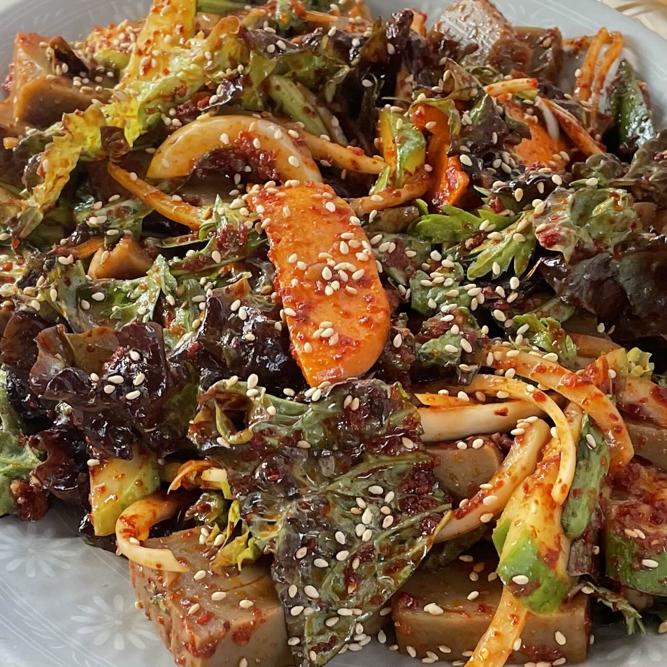 - 도토리묵,고추,상추,깨, 남은 양념 다 넣고 무쳐주면 완성!